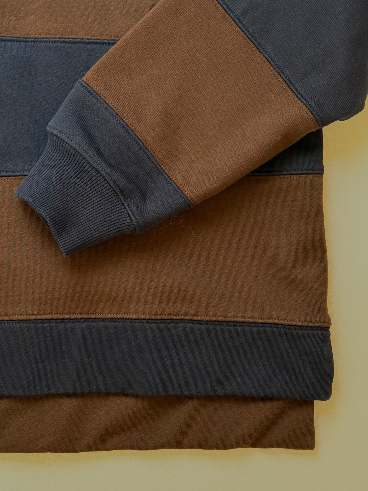 Le pull Brice est confectionné en molleton bouclé 100 % coton non brossé et présente des empiècements cousus ensemble pour créer un motif à rayures dynamique, apportant une texture subtile et rehaussant un look rayé classique. Il est doté d'un col polo en coton tissé, d'une patte de boutonnage intérieure contrastée, de fentes latérales et de poignets côtelés en coton, offrant une coupe décontractée et confortable avec une touche d'originalité.