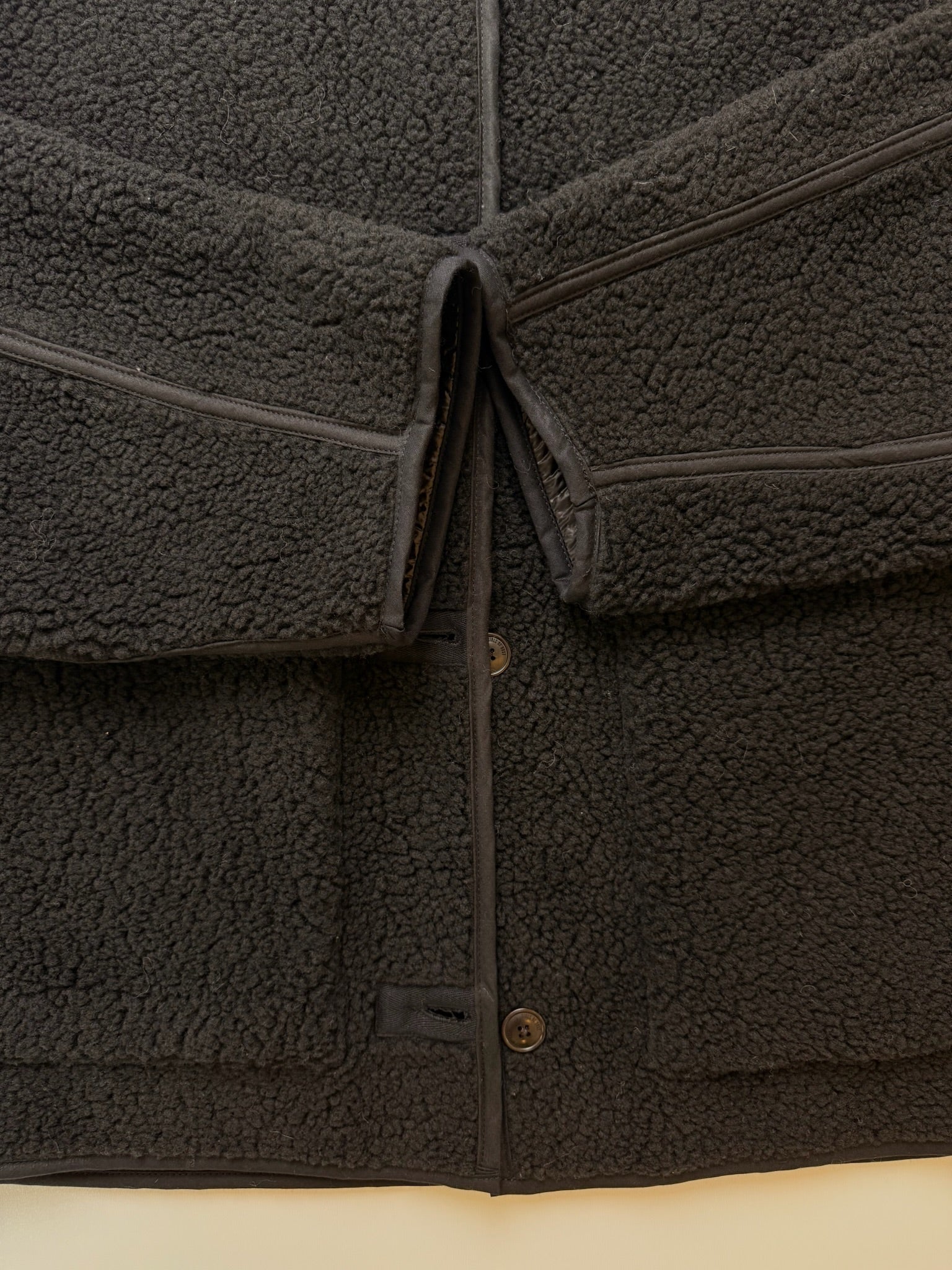 Nouveauté de l'hiver 2025, la veste Solar apporte une silhouette inédite à notre collection de vêtements d'extérieur. Avec sa coupe longue, son design sans col et sa réversibilité totale, elle offre deux styles en un : une silhouette ample et décontractée et des épaules tombantes. La fermeture boutonnée lui confère une allure simple, tandis que sa coupe épurée assure chaleur et confort sans volume superflu.